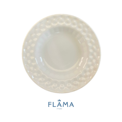 Kit Prato Fundo Bolinha Cerâmica Branca – 6 Peças