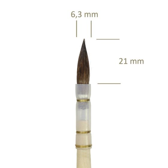 Pincel pontiagudo de pelo curto, feito do pelo natural de esquilos.