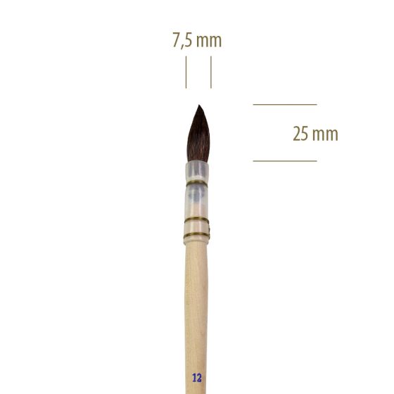 Pincel pontiagudo de pelo curto, feito do pelo natural de esquilos.