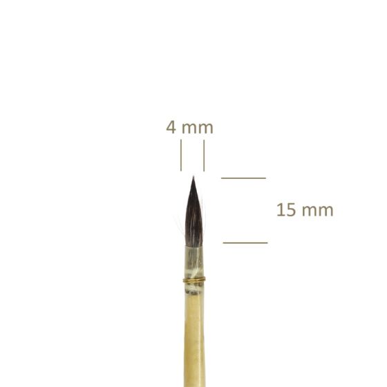 Pincel pontiagudo de pelo curto, feito do pelo natural de esquilos.