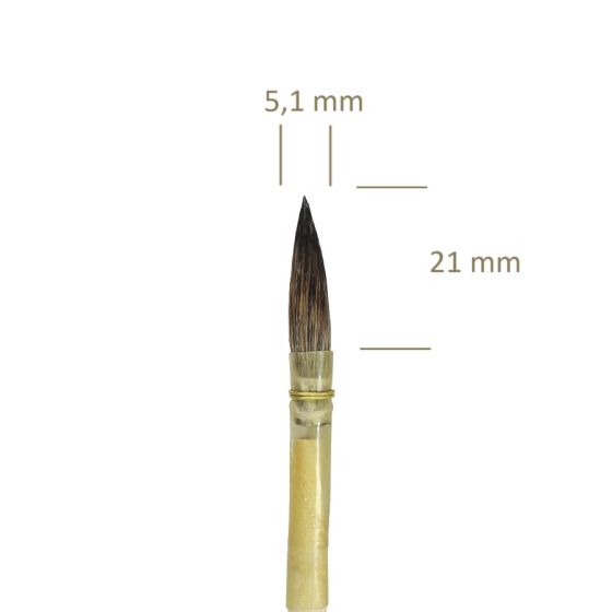 Pincel pontiagudo de pelo curto, feito do pelo natural de esquilos.