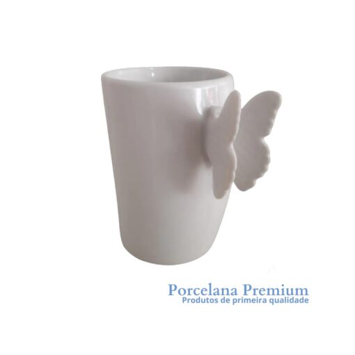 Caneca com asa de borboleta na alça. Porcelana Branca