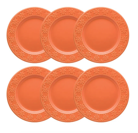 Kit / conjunto com seis pratos de cerâmica da lina sunset laranja