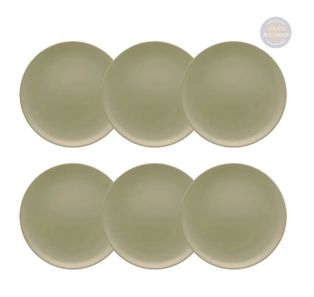 Kit / conjunto com seis pratos de sobremesa em cerâmica da linha Unni Oliva verde efeito acetinado