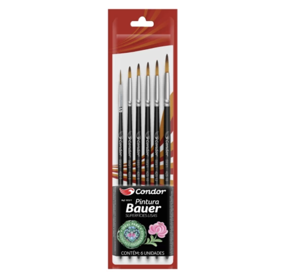 Contém seis pincéis: Ref. 425/6, 425/8, 425/10, 425/12, 425/16 e 422/0.
