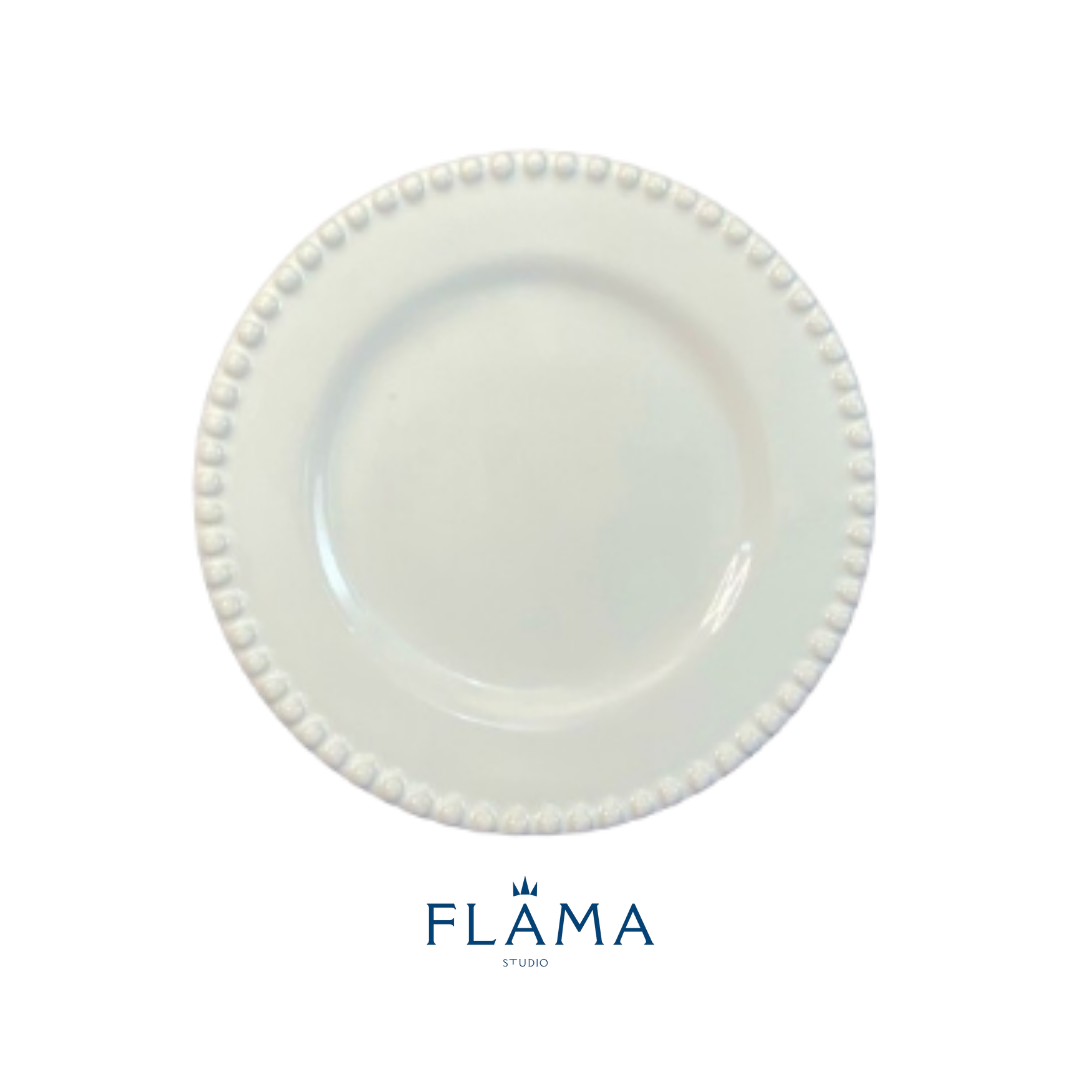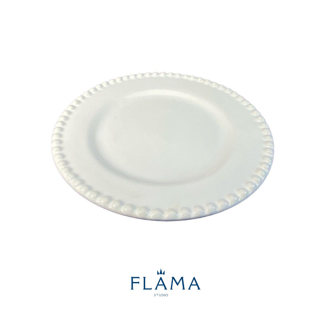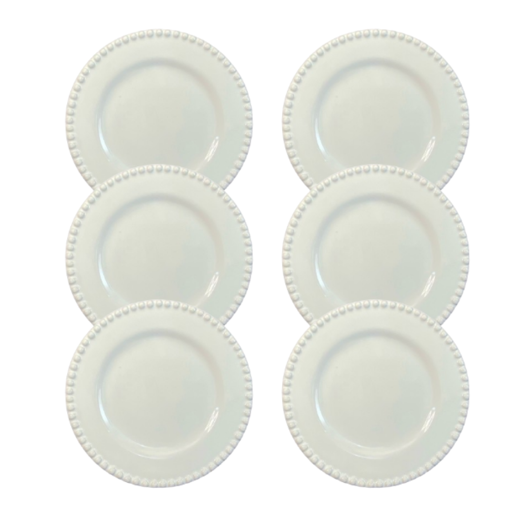 Kit Prato de Sobremesa Bolinha Cerâmica Branca – 6 Peças