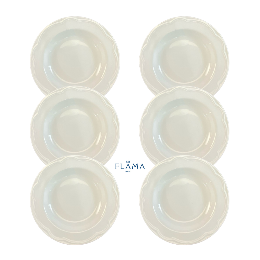 Kit Prato Fundo Cottage Porcelana Branca – 6 Peças