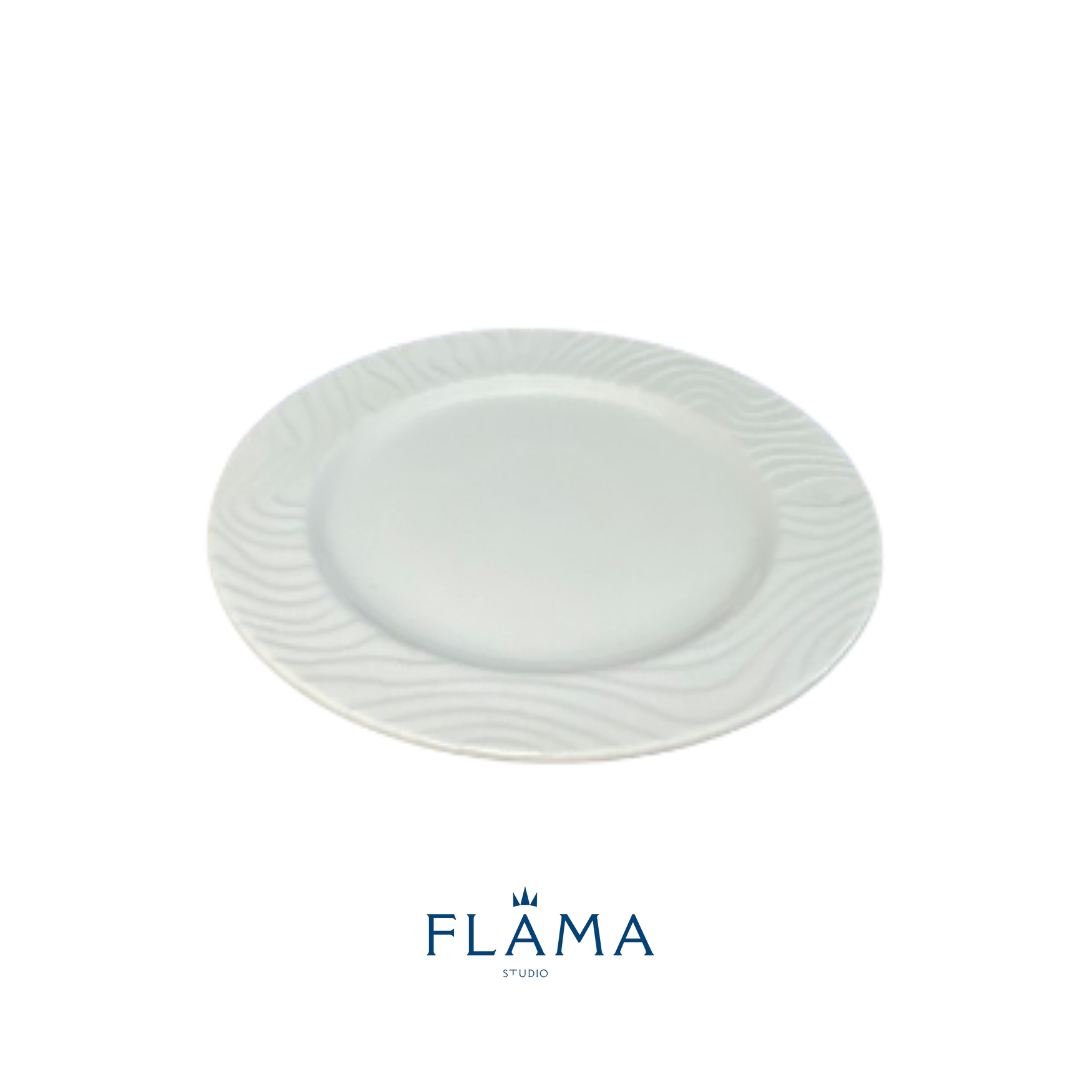 Prato raso, com a borda que imita os veios de madeira! Ideal para compor mesas clássicas e elegantes!