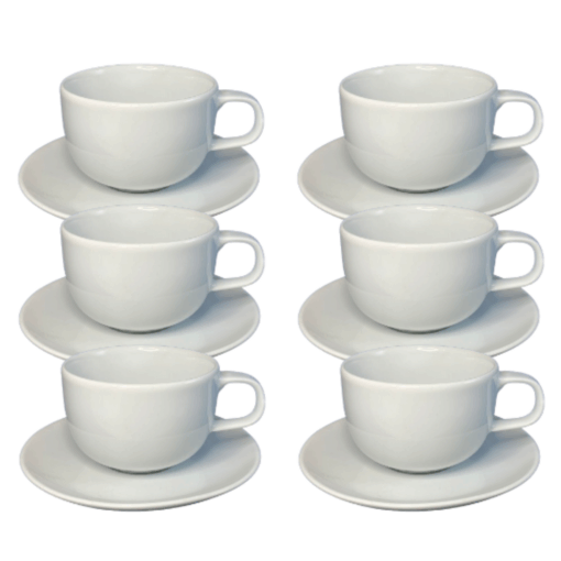 Kit Xícara de Café com Pires Convexa Porcelana Branca – 6 Peças