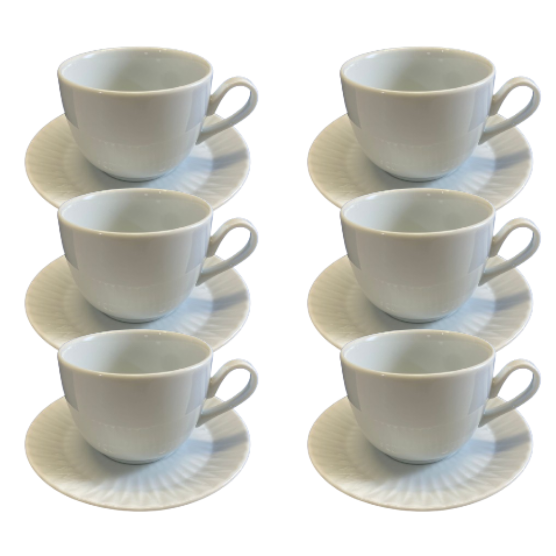 Kit Xícara de Café com Pires Diamante Porcelana Branca – 6 Peças