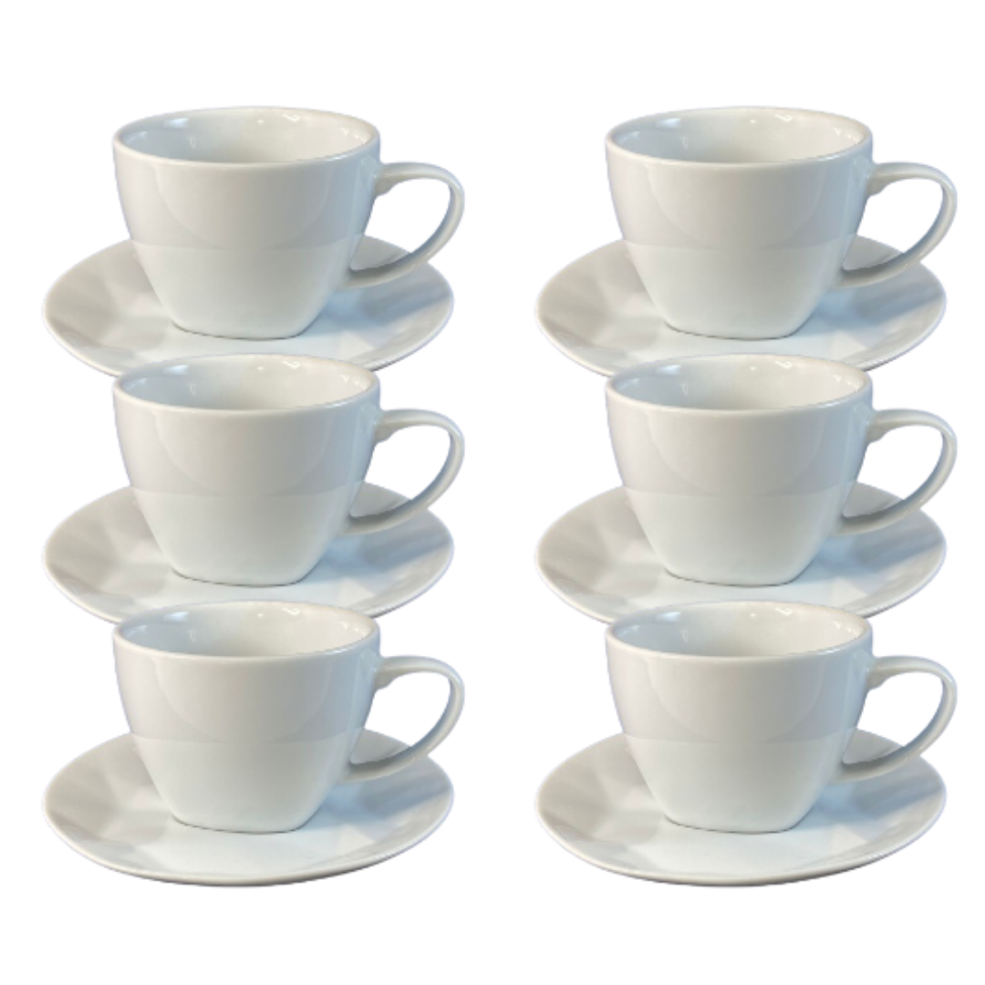 Kit Xícara de Café com Pires Edros Porcelana Branca – 6 Peças