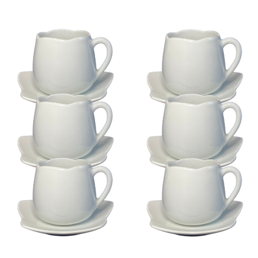 Kit Xícara de Chá com Pires Angra Porcelana Branca – 6 Peças