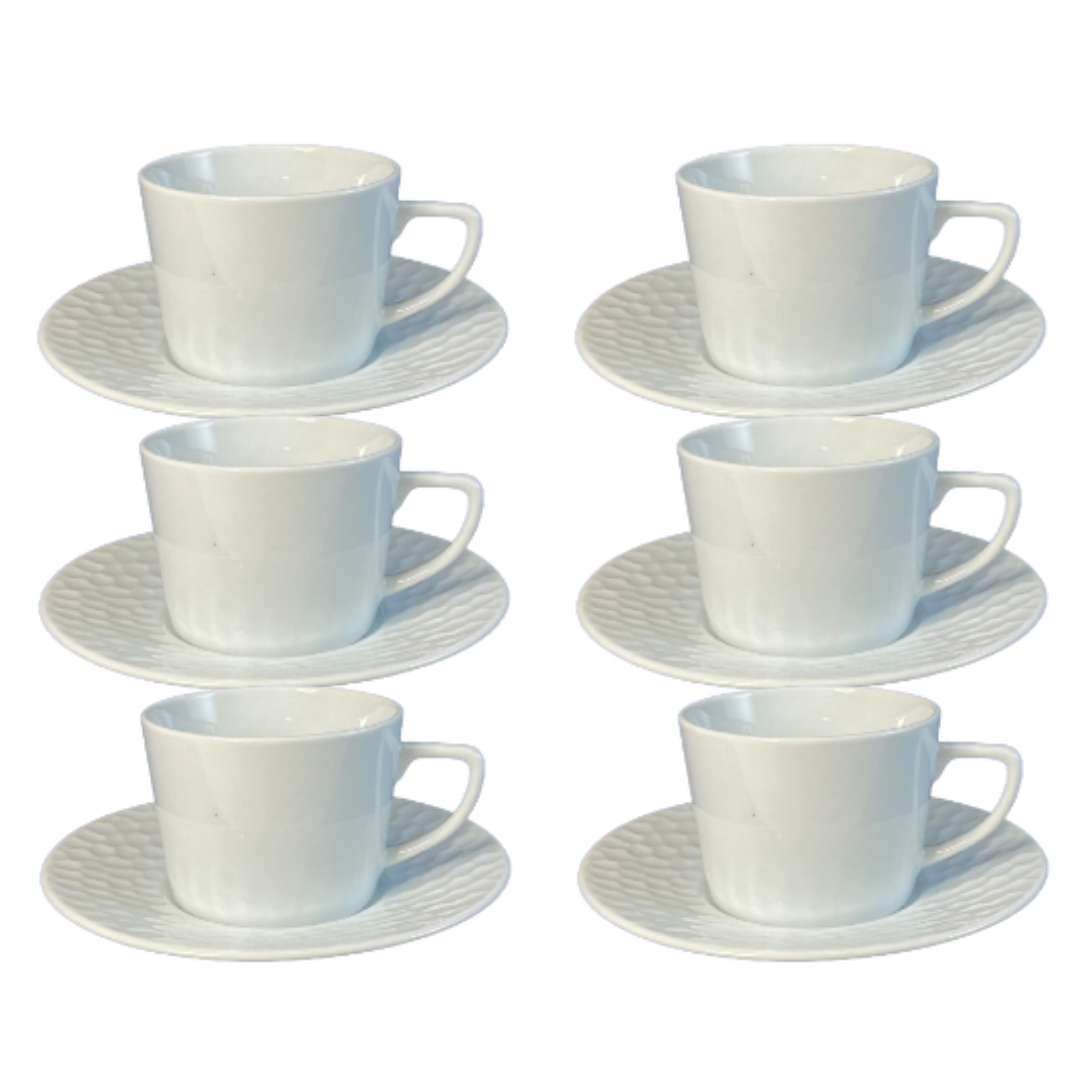 Kit Xícara de Chá com Pires Ártico Porcelana Branca – 6 Peças
