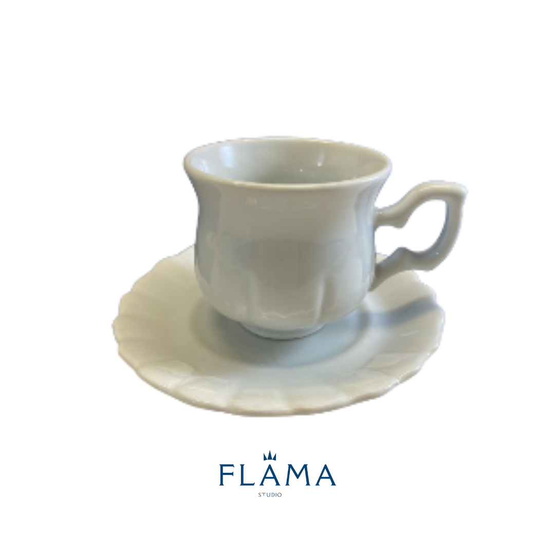 Kit Xícara de Chá com Pires Bia Porcelana Branca – 6 Peças
