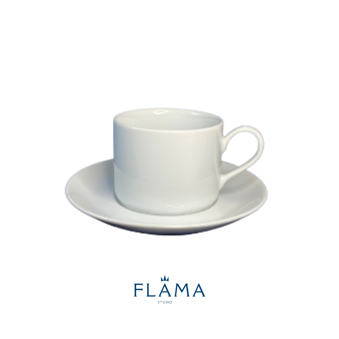 Kit Xícara de Chá com Pires Brasília Porcelana Branca – 6 Peças