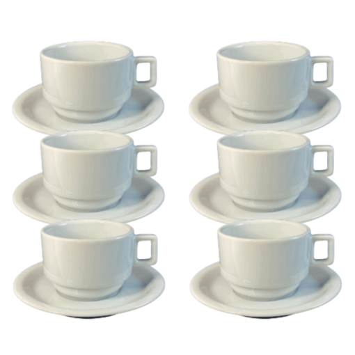 Kit Xícara de Chá com Pires Iguaçú Porcelana Branca – 6 Peças