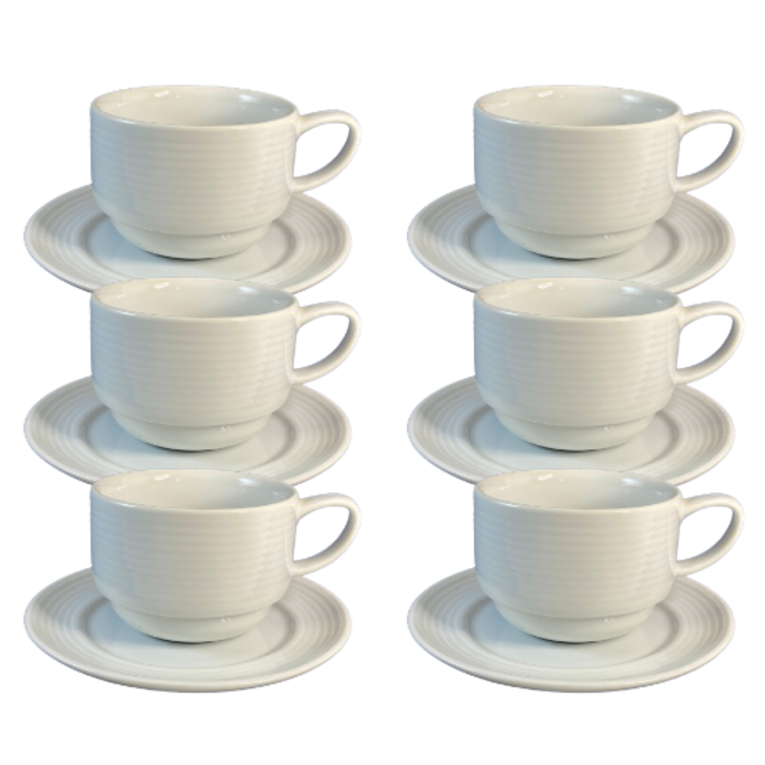 Kit Xícara de Chá com Pires Laguna Porcelana Branca – 6 Peças