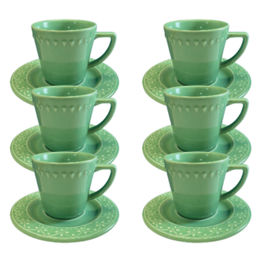 Kit Xícara de Chá Mendi Sálvia Cerâmica – 6 Peças