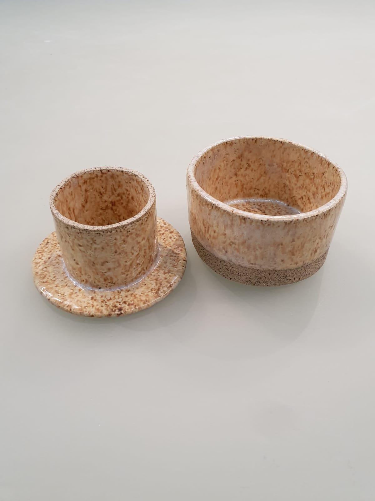 Mantegueira francesa de cerâmica artesanal! Você conhece essa maneira brilhante de armazenar a manteiga sem que fique muito dura ou muito derretida? Você adiciona um pouco de água no recipiente maior e coloca a manteiga no recipiente menor. Ao se encaixarem, a manteiga fica em contato com a água, o que a impede de derreter e a mantém no ponto perfeito para ser usada.