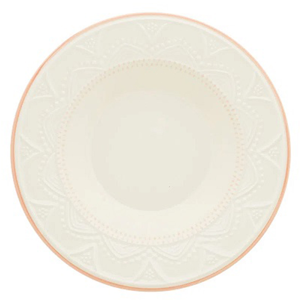 Mandala é uma palavra em sânscrito que significa “círculo” e é conhecida como um símbolo universal da harmonia. Os detalhes em alto-relevo que decoram as peças da coleção Serena Sweet foram inspirados nas padronagens geométricas e florais que geralmente preenchem as mandalas. Para finalizar, um filete delicado na cor rosa contorna as peças.